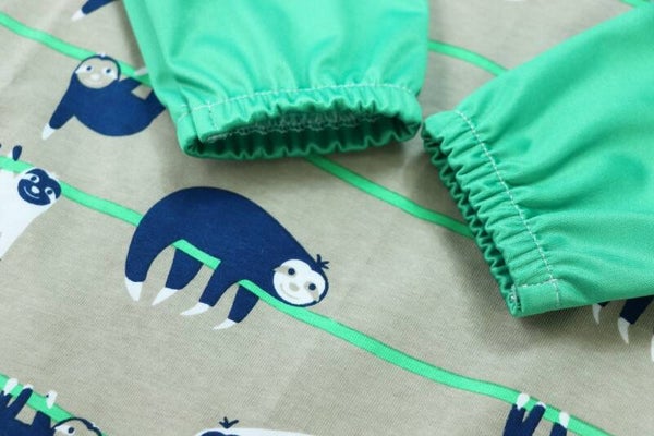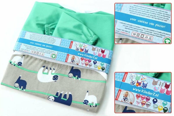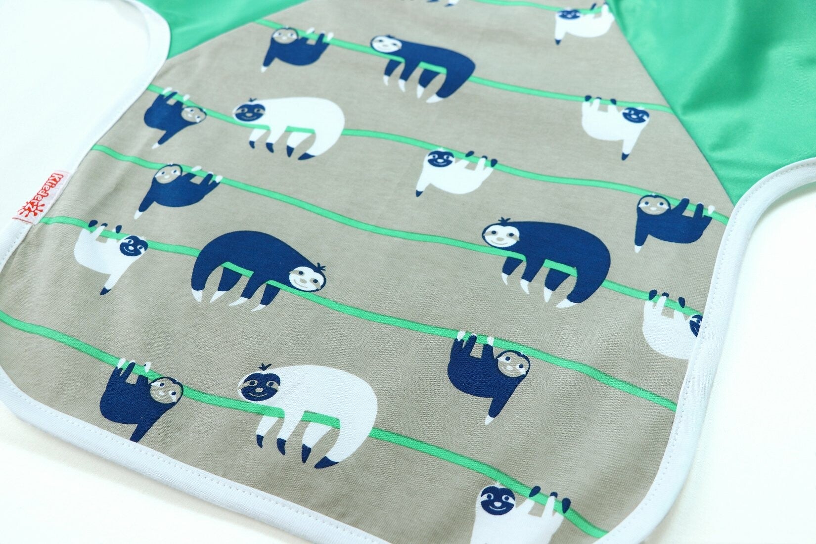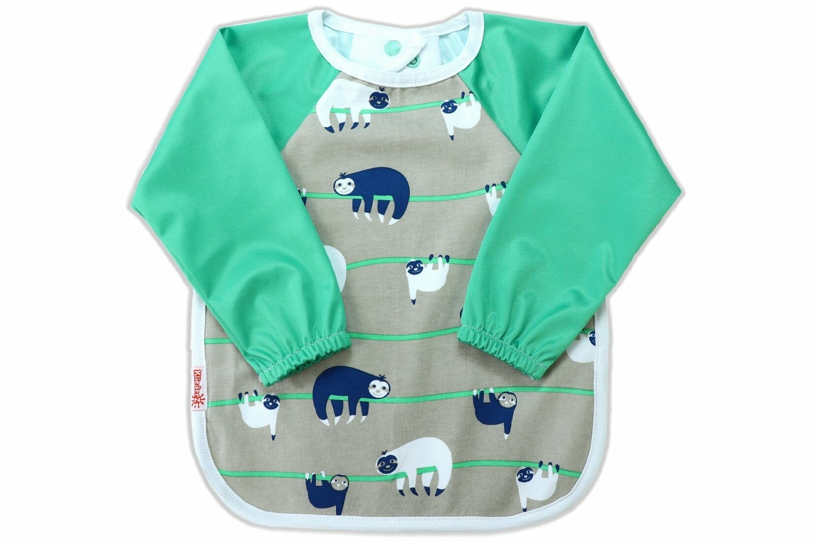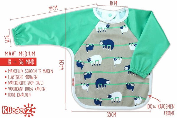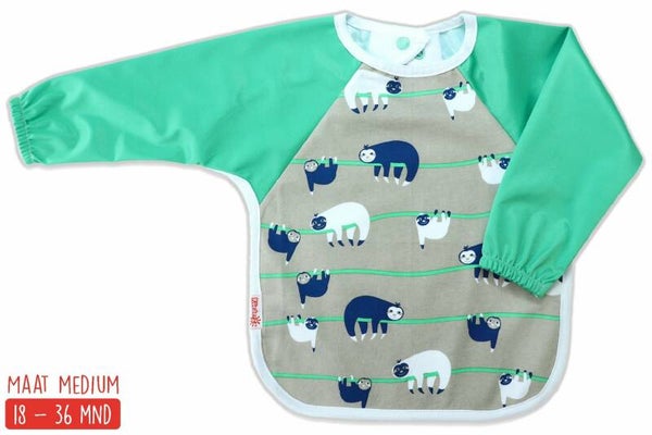 Is jouw peuter een grote knoeikampioen? Aarzel dan niet langer! Deze slab helpt jou bij elke maaltijd. Je hoeft je namelijk geen zorgen meer te maken om natte en vieze kleding. Deze slab met lange mouwen houdt kinderkleding droog en schoon. Deze slab heeft een stoere luiaard print en grijze voorzijde. De groene mouwen zorgen voor een modern en vrolijk geheel. Zo’n leuke slab mág toch niet ontbreken in de garderobe van jouw dreumes of peuter?