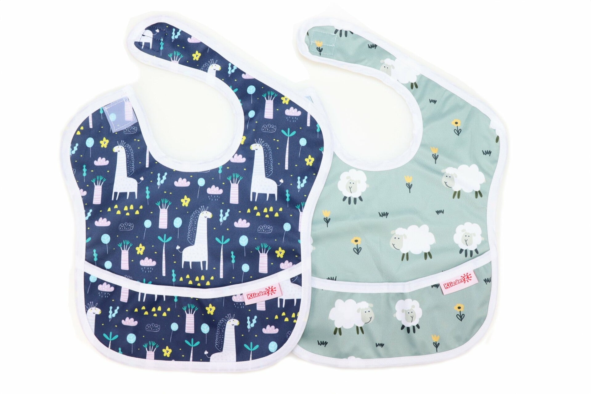 Je kindje zelf leren eten vinden wij erg belangrijk bij KliederZ. Met een goed slabbetje kun je als ouder je kind al aardig zijn eigen gang laten gaan. Met een opvangbakje beperk je de schade op de grond ook aanzienlijk. Dit is een ideale set van 2 eetslabbetjes voor je kleine dreumes. Makkelijk aan te trekken met een stevige klittenbandsluiting op de schouder (niet irritant in de nek) en gemaakt van waterafstotend materiaal.